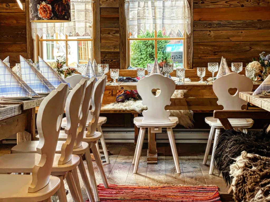 When you step inside, though, this picturesque moment becomes real. The alpine dining room invites you to become part of the image, to immerse yourself in a modern twist on the traditional that’ll make you feel as if you’ve painted into the scene.