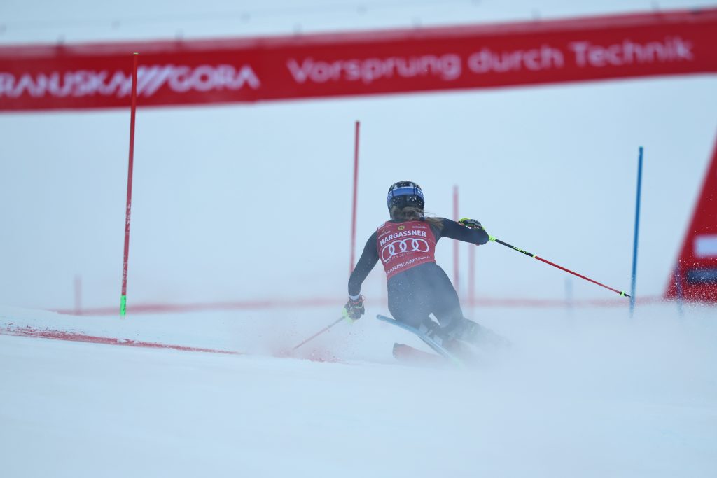 “Now we’re in the depth of the middle of the season and we have these incredible fights on the snow — in both GS and slalom — and that’s cool. That’s what our sport is,” she continued. “I think everybody likes to win, right, but I think it’s better to have these really challenging, testing moments and to rise to the challenge and to put out the best skiing possible. And we get to have this, actually kind of showdown on the second run, and I’m learning to love that.”