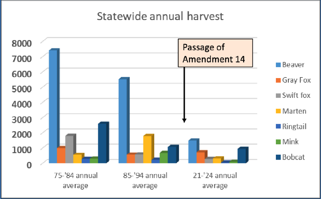 “After banning most trapping methods, we saw a substantial reduction in harvest since 1997,” Viera said. “Colorado can continue to have robust populations of furbearers, benefiting our ecosystem’s health while also providing harvest opportunities via restrictive methods of take and regulated seasons.”