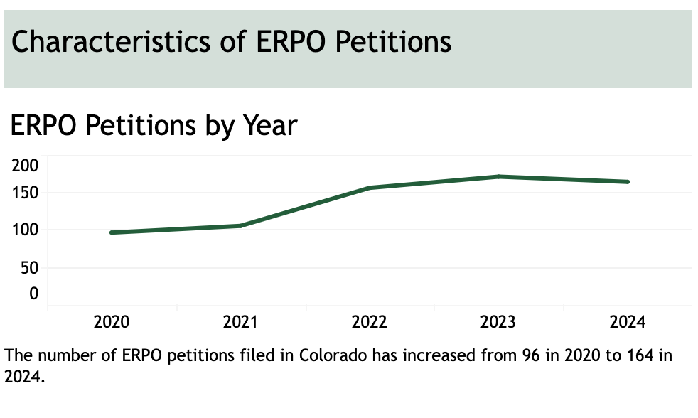 Between 2022 and 2023, the year the law was expanded, the number of petitions rose from 156 to 171. They decreased slightly to 164 in 2024, according to statistics from the Colorado Office of Gun Violence Prevention.