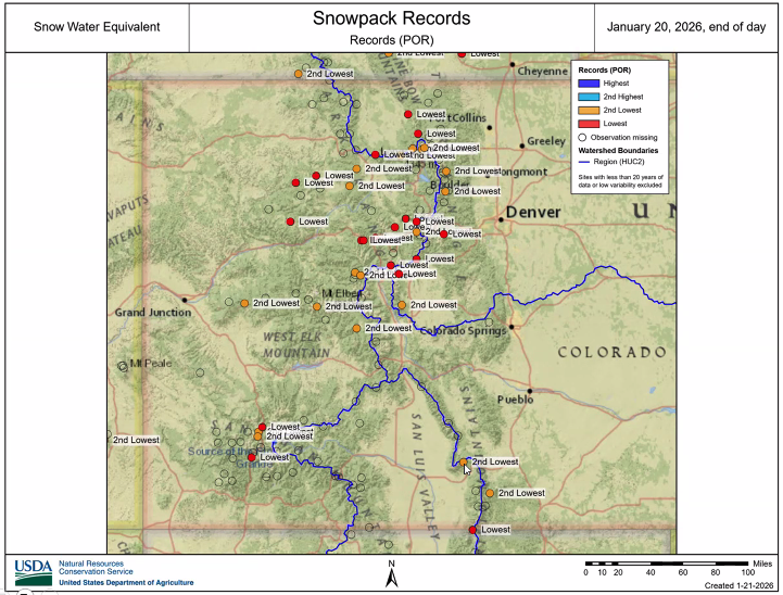 Colorado’s snowpack has hit record lows across the state this winter.