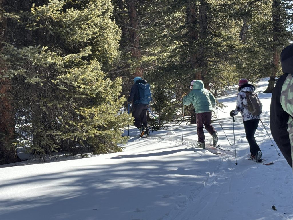 As Domonkos led the group off the trail and into the trees, the snow grew slightly deeper, which he said is exactly why this spot was chosen as the location for a snow telemetry station. Snow telemetry stations are typically located on high-elevation mountain passes in the trees, where more shade allows the snow to be less impacted by the sunlight and wind, he said.