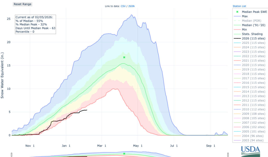 Across Colorado, the state’s array of snow telemetry (SNOTEL) systems have documented record-low snowpack conditions in numerous river basins and on a statewide level several times this winter.