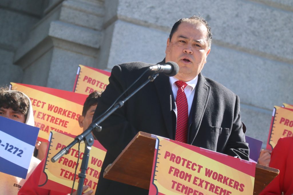 “When we talk about climate change, working people know about climate change, because we experience it every day,” Velasco said Wednesday during a news conference outside the state Capitol.