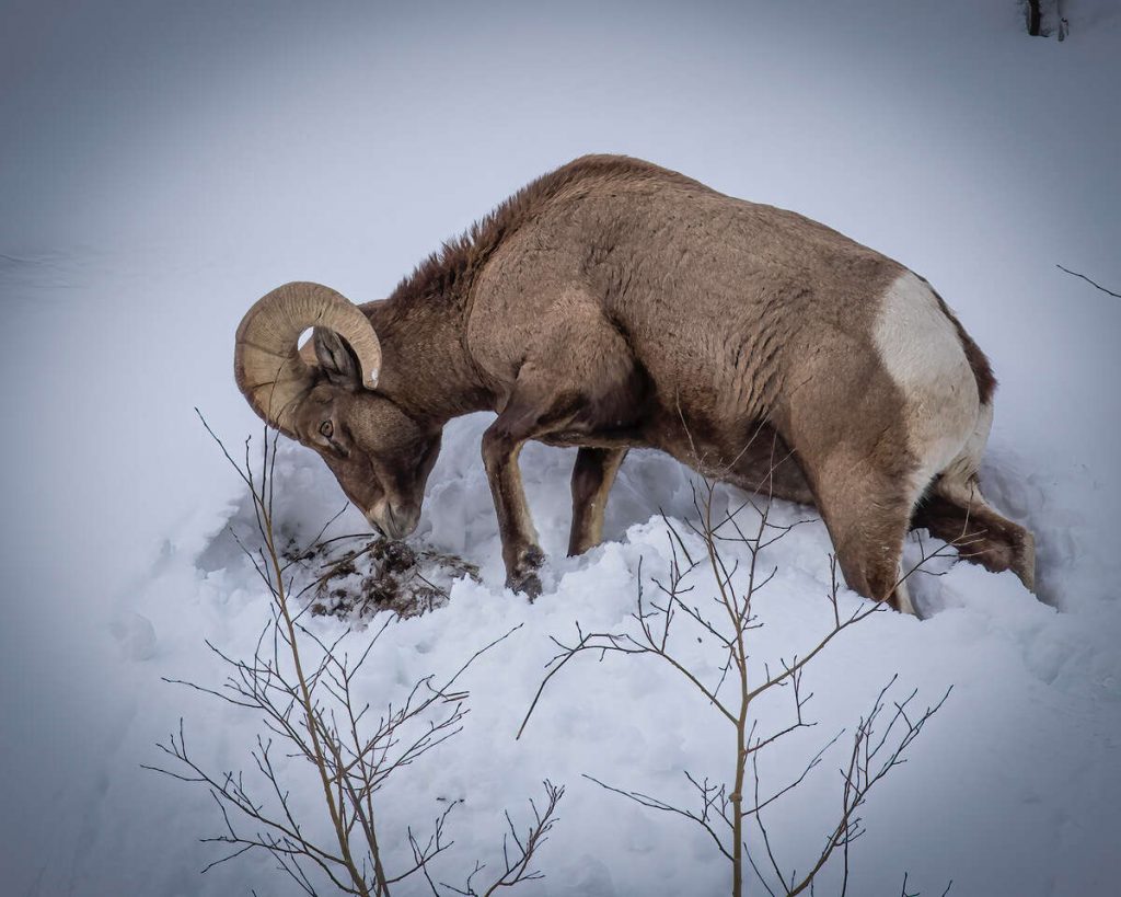 For deer and bighorn sheep, their historical use of the valley has been on the open, south-facing hillsides. The favorite foods of mule deer are the leaves, needles, succulent stems, fruits and seeds of trees, shrubsand forbs. Bighorn sheep browse on grasses, clover, and sedges in the warm months but switch to eating sage, willow and other woody plants in the winter. That type of forage is significantly different from other ungulates like cattle and elk.