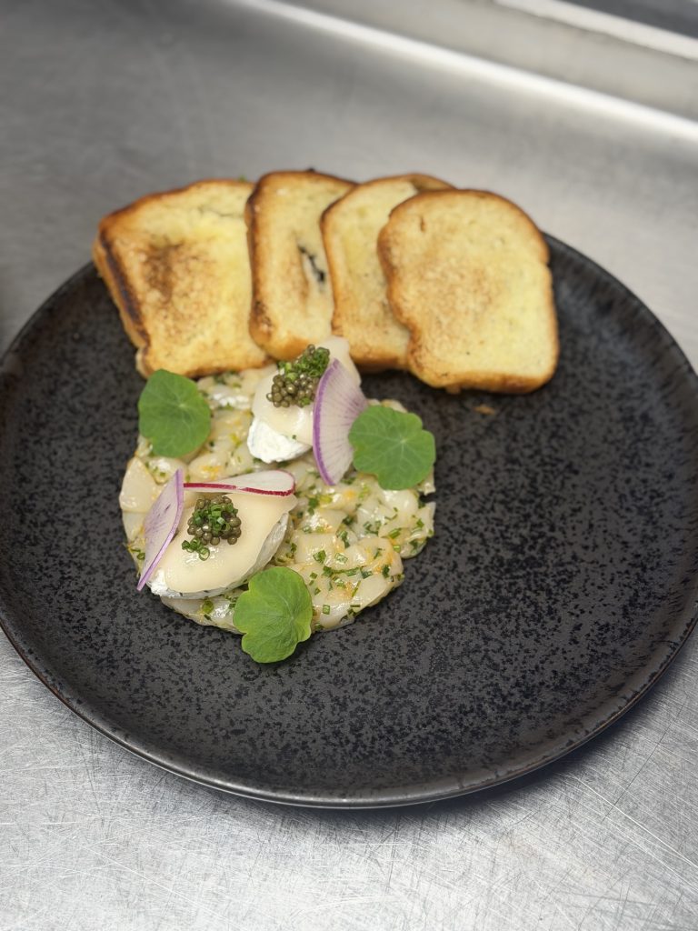 Pastry Chef Jessica Anderson is back, her menu of in-house breads and pastries dovetailing nicely with Chef Blea’s culinary options. The joy of the breadbasket cannot be overstated, whether its slabs of freshly baked bread, focaccia or dinner rolls. But be careful not to fill up, as there are several don’t-miss appetizers. The scallop tartare is a magical dish, with a simple list of ingredients put together with incredible sophistication and precision. Japanese Hokkaido scallops are diced and dusted with olive oil, served with an herbed crème fraiche and brioche toast points. In some sort of kitchen alchemy, the delicate scallops seem to melt in the mouth while the crème fraiche keeps its structure. Adding in savory pops from the occasional caviar burst, you’ll want to share this one with the table so everyone can ooh and aah together.