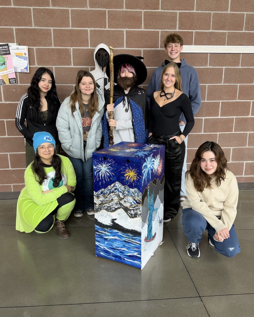 Freshman Mia Whirley produced the winning box that will stay at the school. Her intricate hand-painted box, based on graphic elements, features Hot Stuff, the diapered devil that has long been the school’s mascot, along with mountain ranges, Mount Rushmore, and a bald eagle.