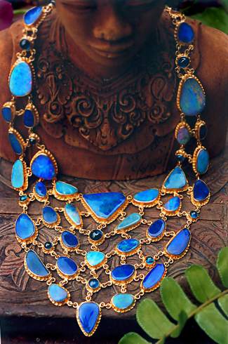 Tyler, who resides in Bali in a colorful, multi-level home that has been featured on international television, is the first outside artist whose work Karats of Vail owner Dan Telleen wanted to display in his museum-like gallery. Tyler collects the vibrant gems for her pieces from all over the world. In addition to small galleries across the world, her jewelry collections can be found at Saks Fifth Avenue and Neiman Marcus. But it is each individual gem, stone or artifact that inspires the California native’s own inner light and vision, regardless of whether it is an amethyst, diamond, a sparkling piece of Venetian glass, green turquoise or rare red coral.