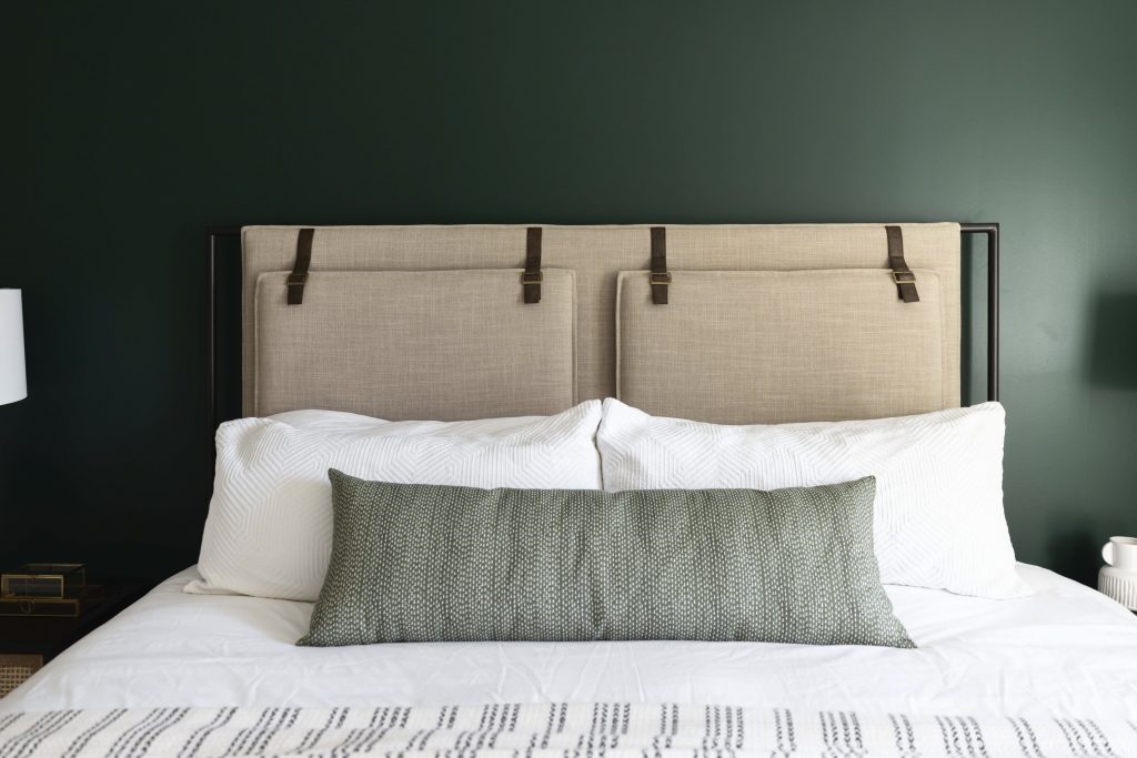 But when I’d finished, it looked amazing. The rich color, along with white trim and comfy furnishings, gave the room way more character, and felt much homier than the basic beige had.
