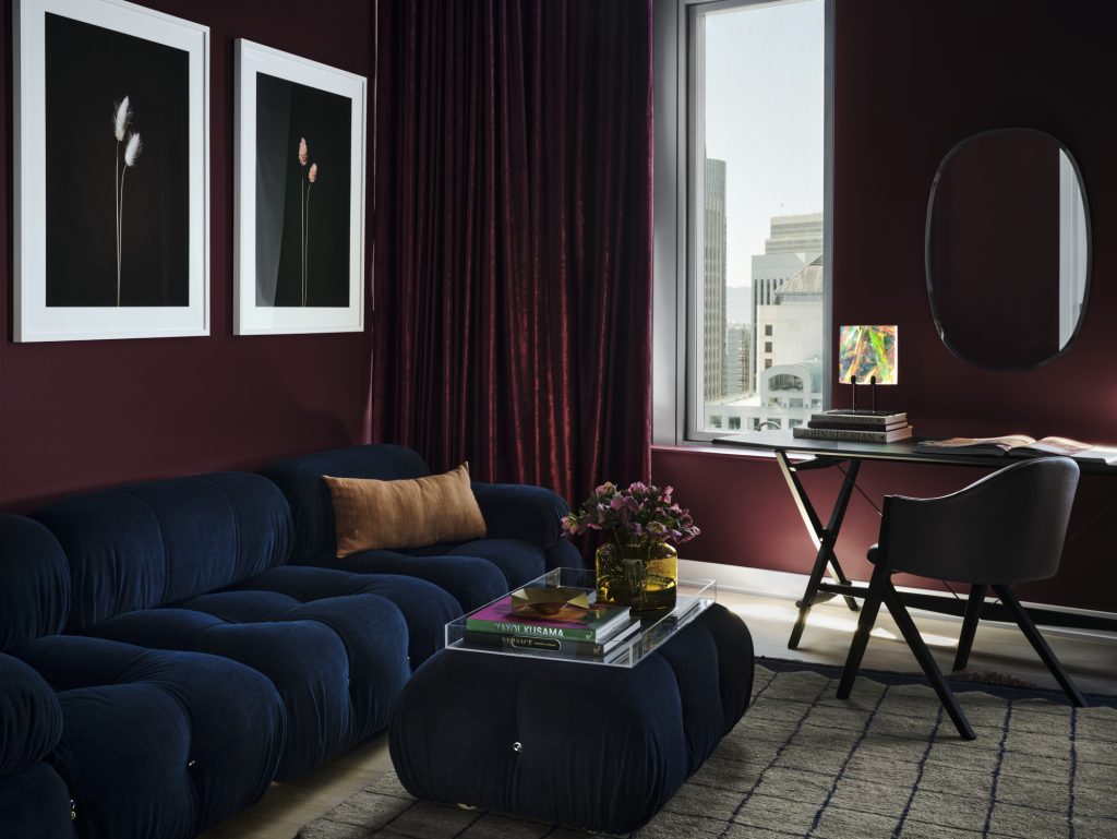 “Forget the idea that dark colors turn rooms into caves of doom. It’s time to embrace the moody vibes! They have an energy. A room wrapped in a dark, dramatic color can actually provide an uplifting, invigorating feeling,” she says.