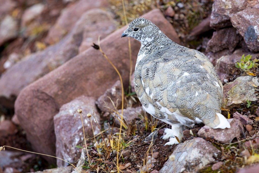 Of all of Colorado’s birds, only one — the white-tailed ptarmigan — lives in the Alpine tundra year-round. Masters of camouflage, ptarmigans’ feathers are pure white in the winter and in the summer are gradually replaced by mottled black, brown and tan that blends in with the rocky terrain.