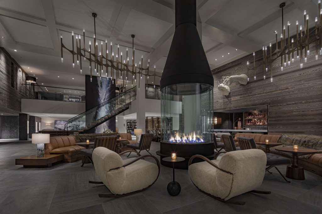The reception desks are now located in a section to the left of the lobby, keeping the leisurely, communal feel of the lounge area separate from the guest inquiries and check-in processes. The new reception area has soft lighting throughout, faux-fur wall decor and a crackling fireplace to maintain the atmosphere of an alpine haven as guests are settling in after their travels.